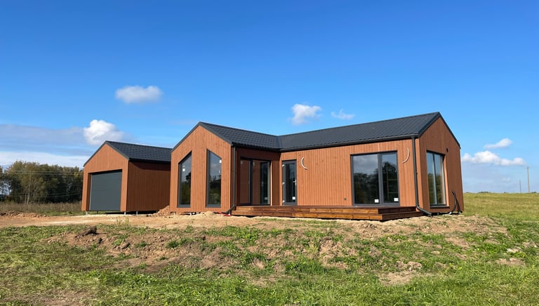 Išorės apdaila vieną kartą pramoniniu būdu dažytos dailylentės ir skarda Classic.